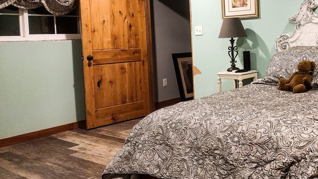 Because there wasn’t trim around the doors upstairs, there are some imperfections in the drywall around where that trim will go. In the master bedroom, it looks like a kid has picked at an edge and then just pulled leaving a place that needs repair. See it?