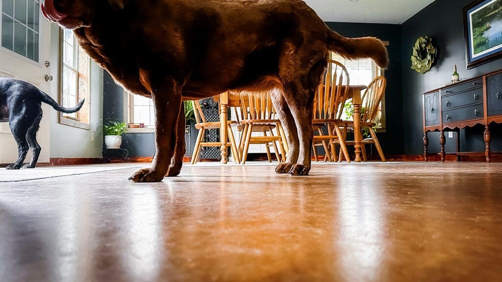 Concrete is great. It doesn’t matter if doggos come in with wet feet — and that’s awesome. But even after I mop, it still looks “unfinished.” Now I know I should just get used to the extremely casual barndo vibe, but I’ll admit I struggle with it.
