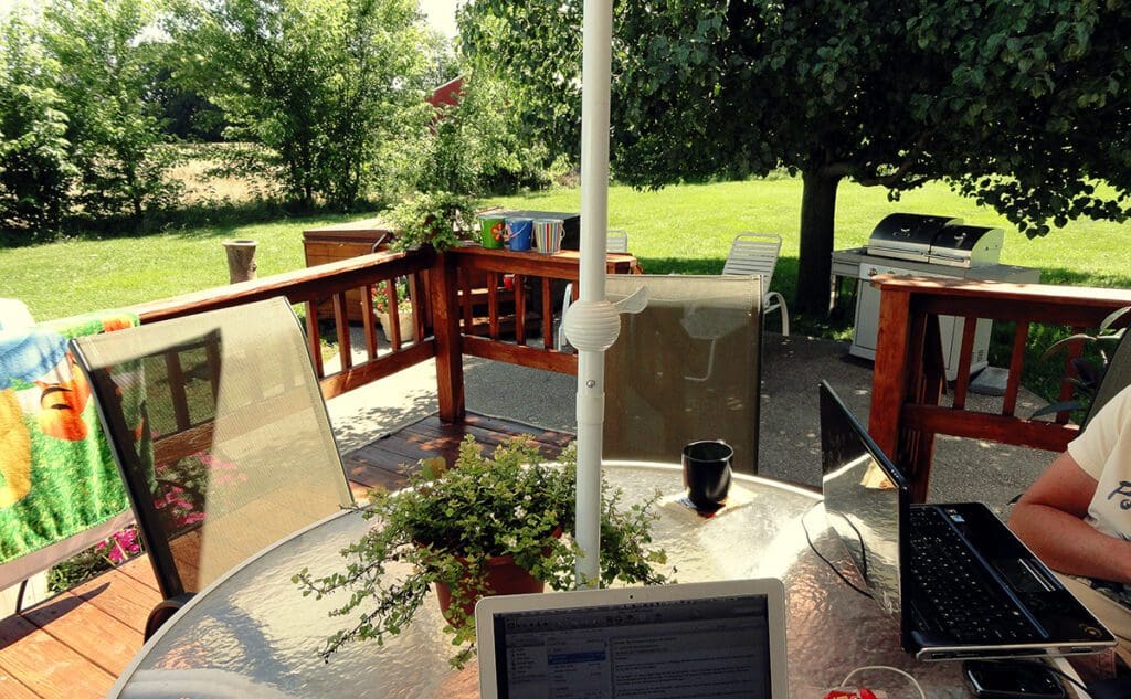 Now, we drive by the villa to get here and I can’t help but look that way. Paint is coming off the one front corner and all the trees are gone. Even the fire bush that marked the property line in front is missing. The grass is always mowed but lots of cars are parked in the drive. There’s no visible furniture on the patio or the deck. 🙁