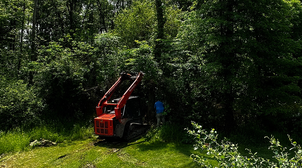 Considering what we’ve spent on the downstairs room’s walls and ceiling — and all the trim required upstairs to finish it — I spent a whole lot more money than I intended to. Then came gutter guards… desperately needed but required even more money. If that wasn’t bad enough, there were dead trees that were just waiting to kill someone with a stray branch.