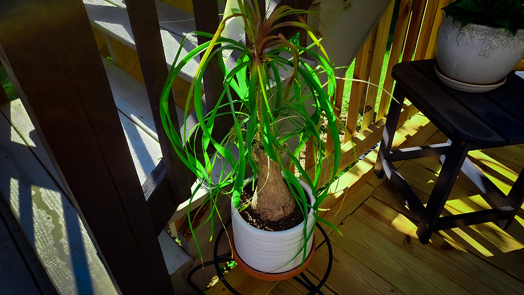 Ponytail palms are hearty and only require watering every week or two! Mine has stayed the same size forever so I figured it probably needed a bigger pot. When I pulled it out of it’s current container, there wasn’t any dirt — just a huge clump of roots. I broke those apart a bit and gave it a new and bigger home. We’ll see how she does over the coming weeks. I should’ve went bigger.