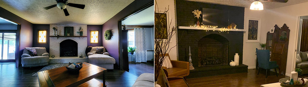 The family room looks a lot “classier” than my choice of colors but it’s also a whole lot more bland, too. I like it both ways.
