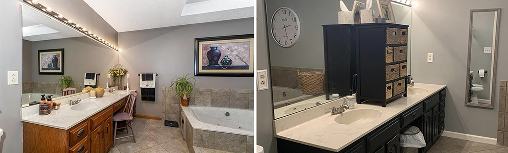 I think the outside was a big improvement. We talked about painting the brick, but didn’t want to maintain it. Getting rid of the shrubs and adding the awnings and window boxes was a definite win.