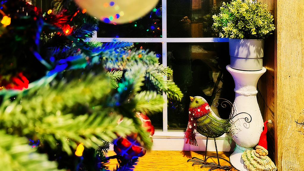 One of these days I’ll have to break down and buy some new ornaments and Christmas decor. I keep hauling the same boxes out and using the same stuff year after year. I don’t know where this bird came from, but she’s been hanging out at my house in December for who knows how long.