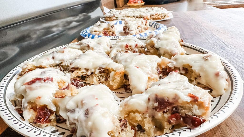 To buy one piece of this delicacy at Starbucks is right at $3 bucks. If mine weren’t so ugly — and if I were in the bakery business — I could sell this batch for around $100 dollars. They aren’t difficult to make, but the recipe is also not the easiest to follow either. Mix but not too much… hand stir in this… icing and then drizzle… blah blah blah.